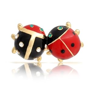 Bling Jewelry Gold Plated Insect Bug Couple Crystal Ladybug Brooch Lapel Pin