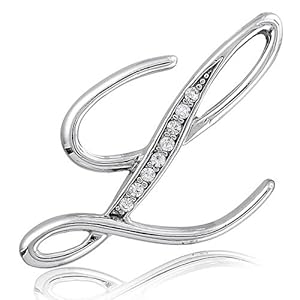 Silver Toned Initial Letter Brooch Pin - L, Holiday Christmas Gift